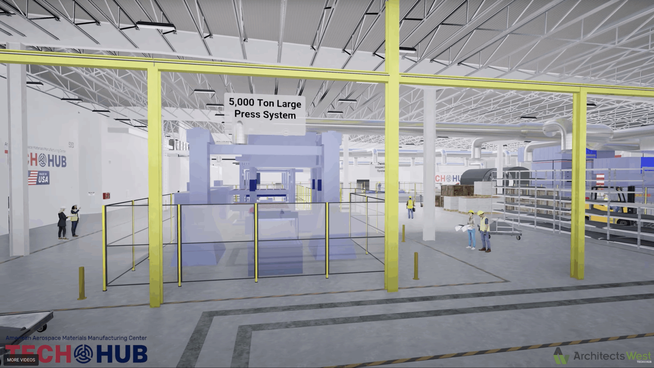 The Aerospace Tech Hub will bring the largest composites press in the world to the United States, a 5,000-ton press capable of producing thermoplastic composite parts at scales currently impossible domestically. Europe and Asia are currently positioned ahead of the United States in research, development, and manufacturing of advanced aero parts. The Aerospace Tech Hub is ready to reverse this trend, preserve thousands of American jobs, and build a domestic aerospace supply chain to support the next generation of defense and commercial aircraft with American manufacturing.”